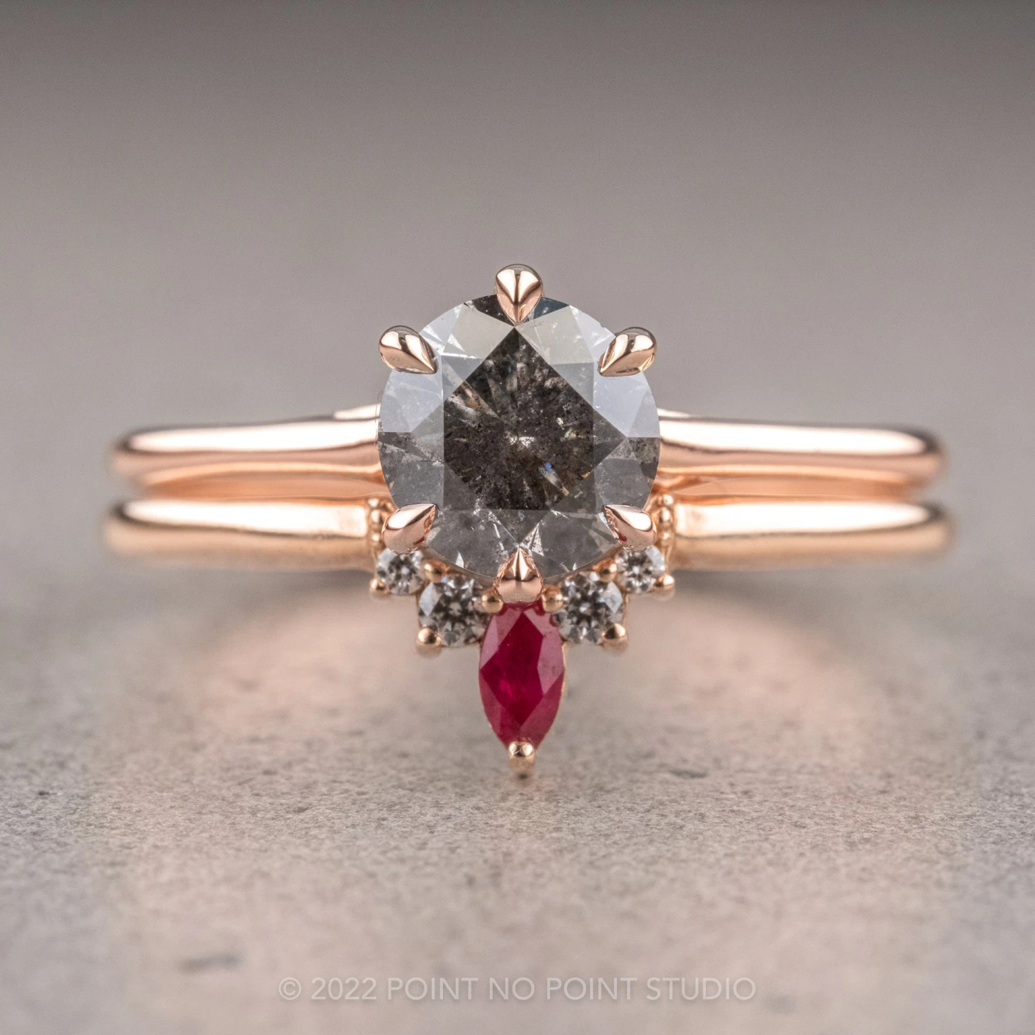 Shown pictured with our Ruby Charlotte wedding ring, sold separately here.