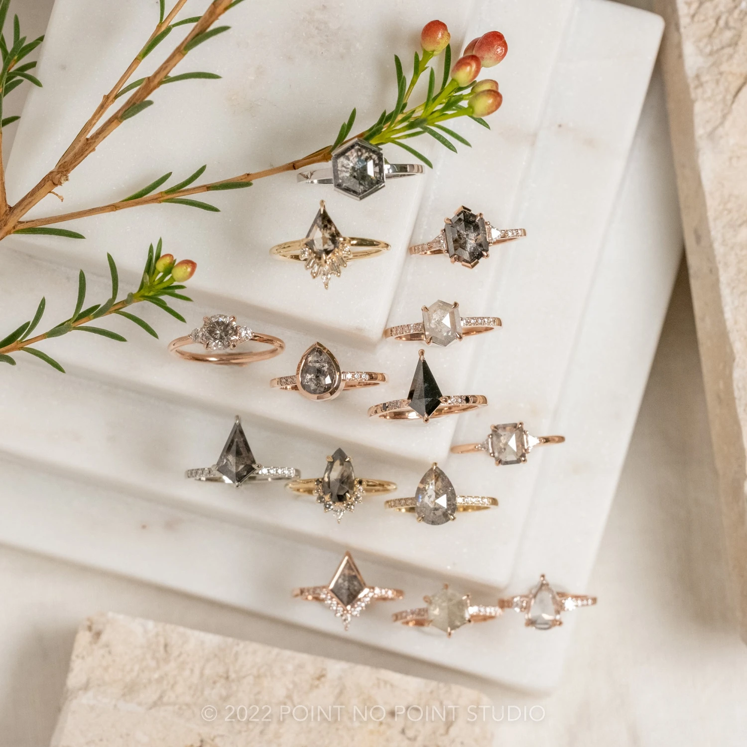 Included with your order – A Point No Point Studio digital ring certificate on a branded PNP USB drive, black velvet clam shell box, and a polishing cloth.