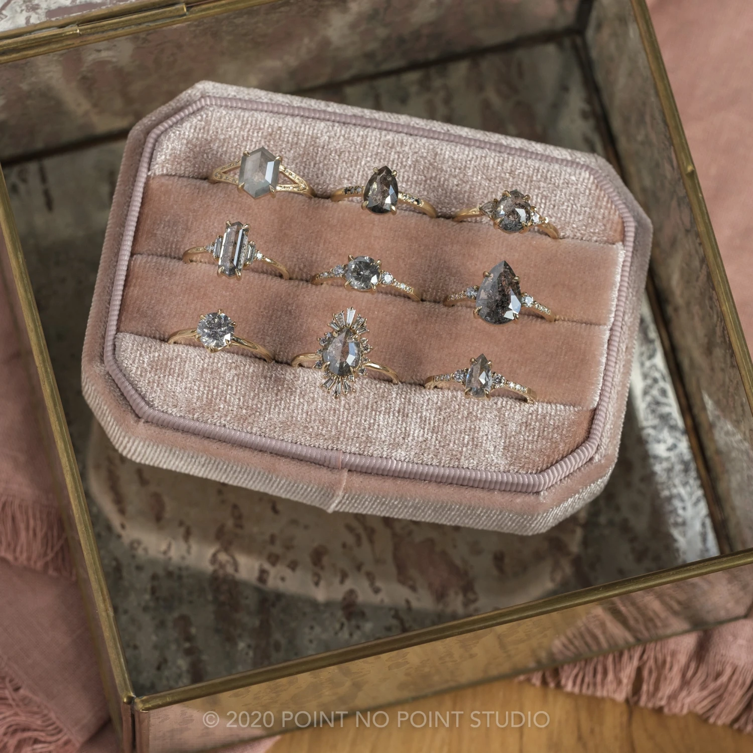 Included with your order – A Point No Point Studio digital ring certificate on a branded PNP USB drive, black velvet clam shell box, and a polishing cloth.