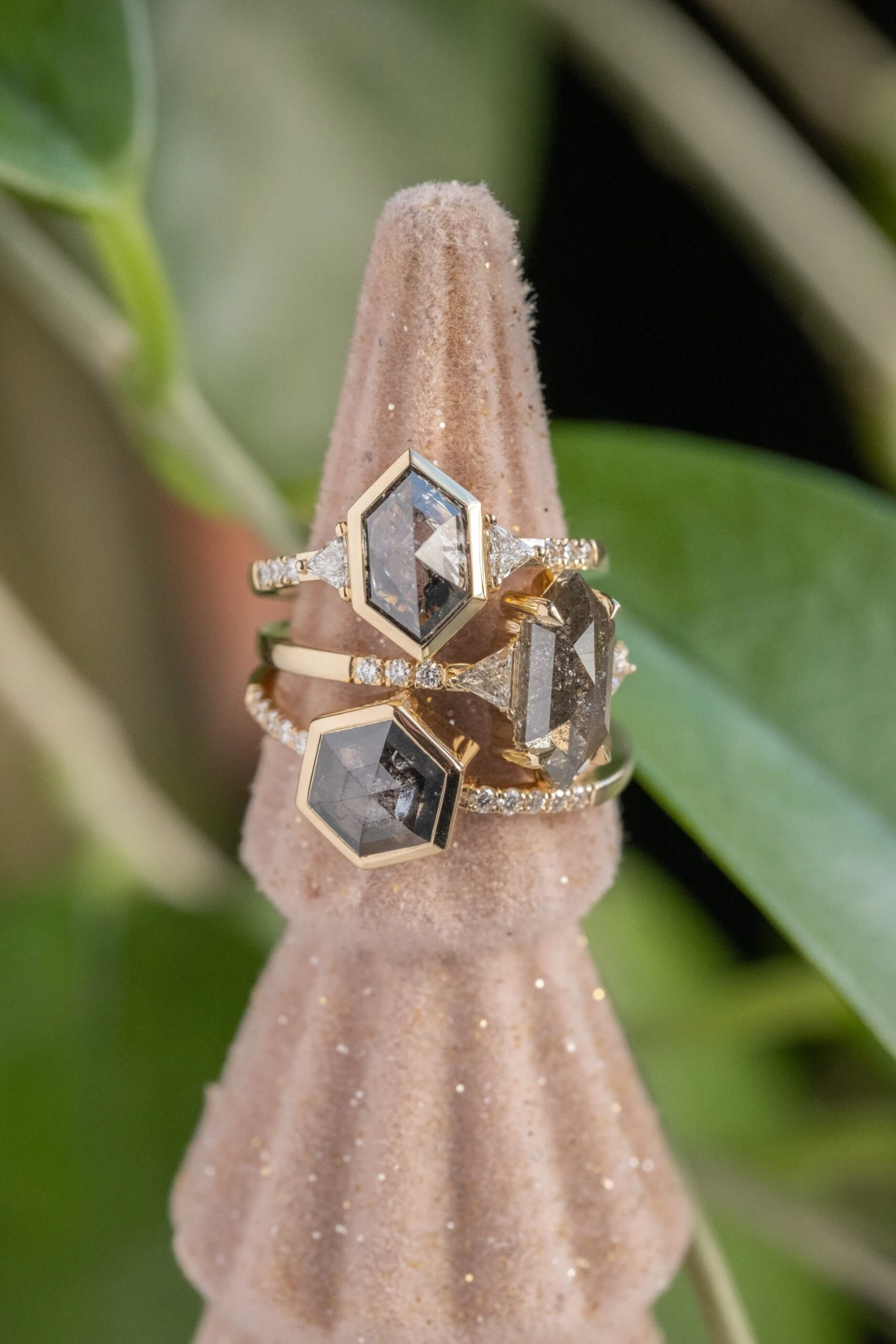 Salt and Pepper Hexagon Diamond Engagement Ring