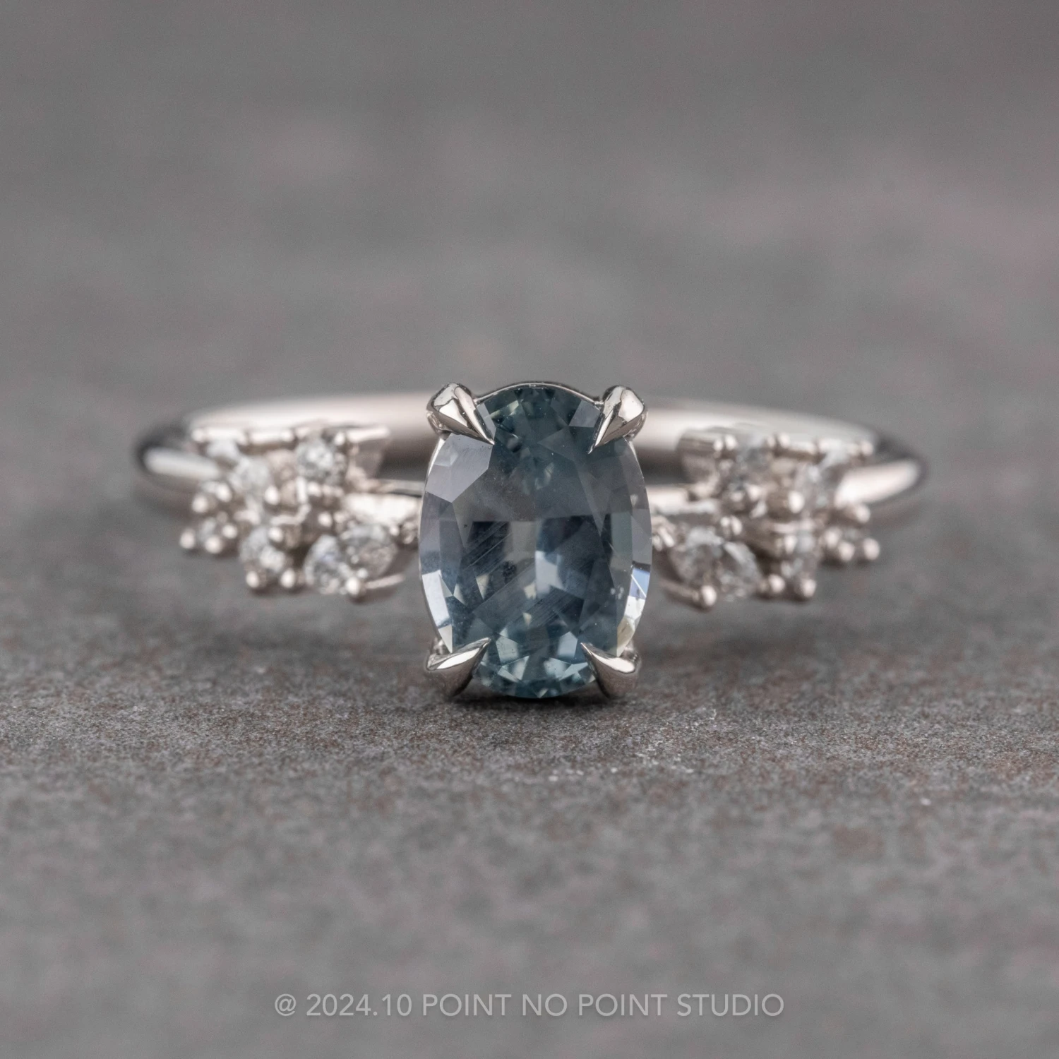 Blue Oval Montana Sapphire and Diamond Engagement Ring