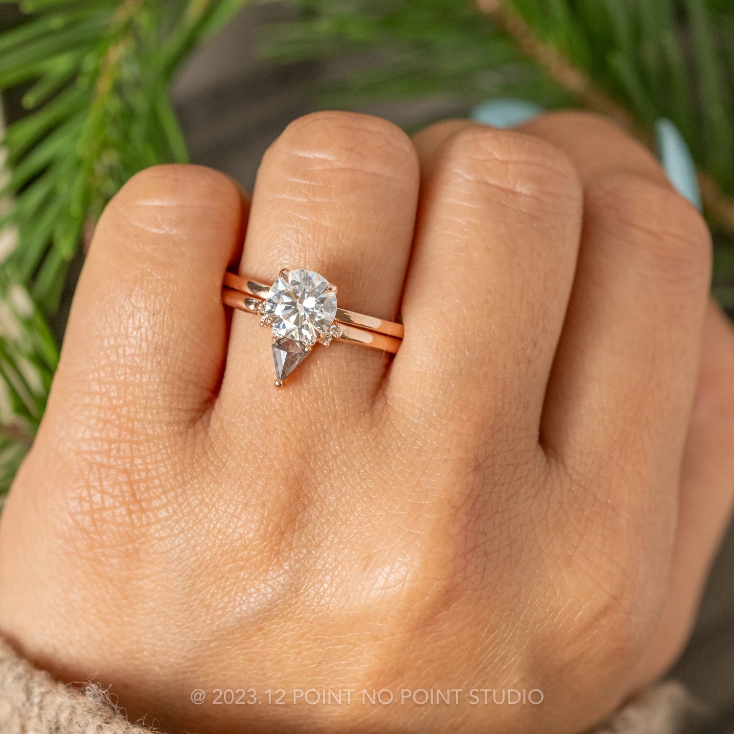 Included with your order – A Point No Point Studio digital ring certificate on a branded PNP USB drive, black velvet clam shell box, and a polishing cloth.