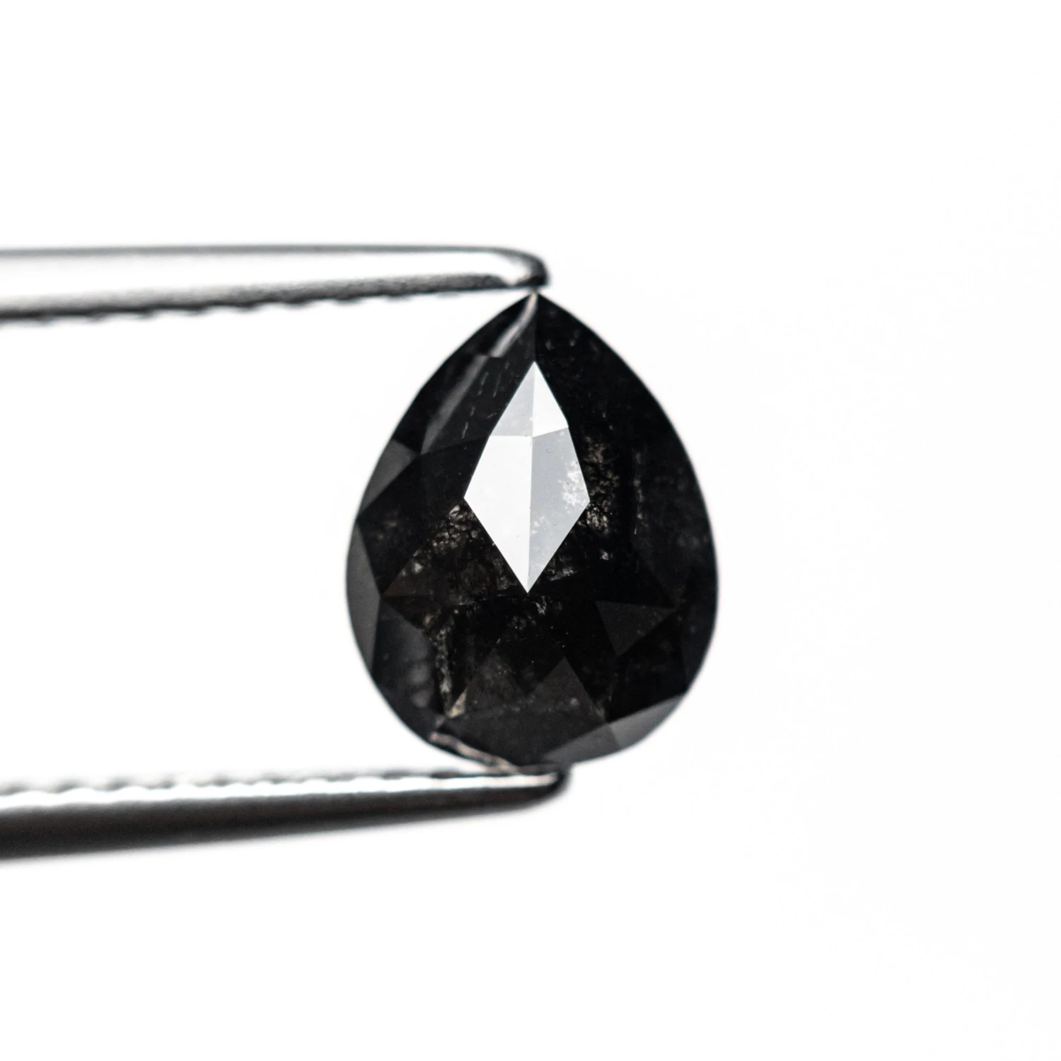 1.52 Carat Black Speckled Rose Cut Pear Diamond