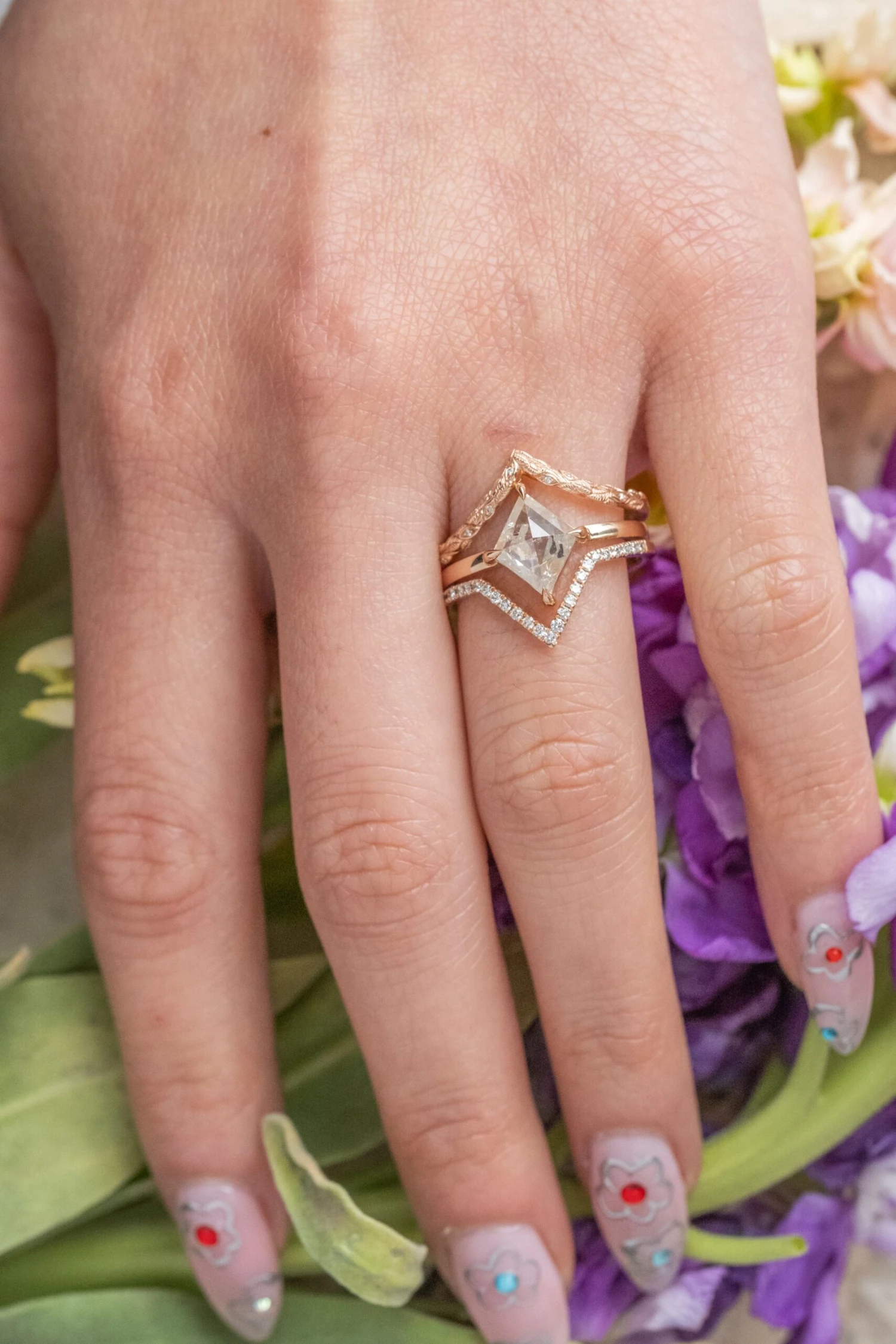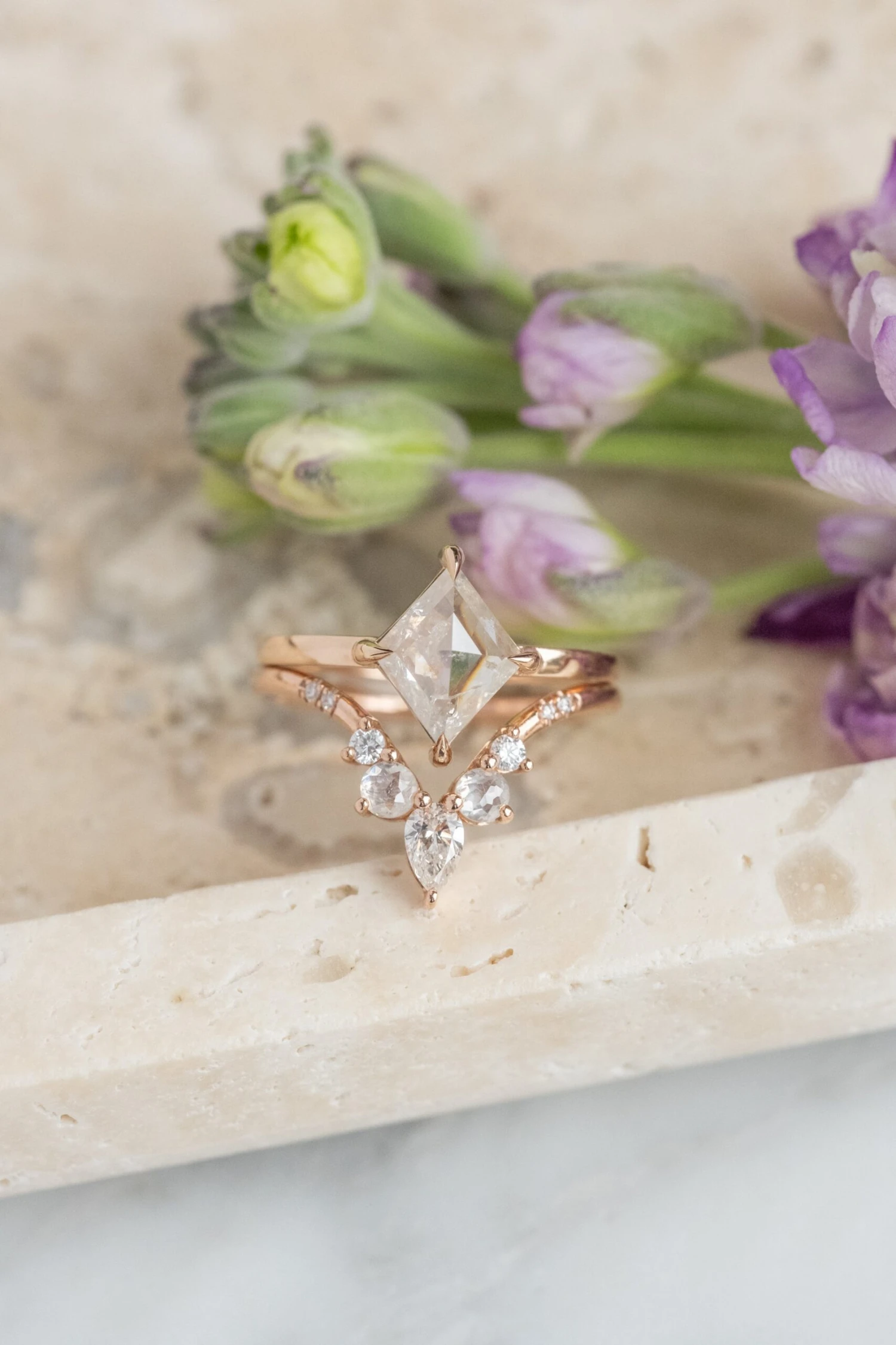 Wedding Rings: This engagement ring can be stacked with ANY of our hundreds of wedding ring options, we use the same engagement ring CAD measurements to build the wedding ring around it to ensure a great stacking set.