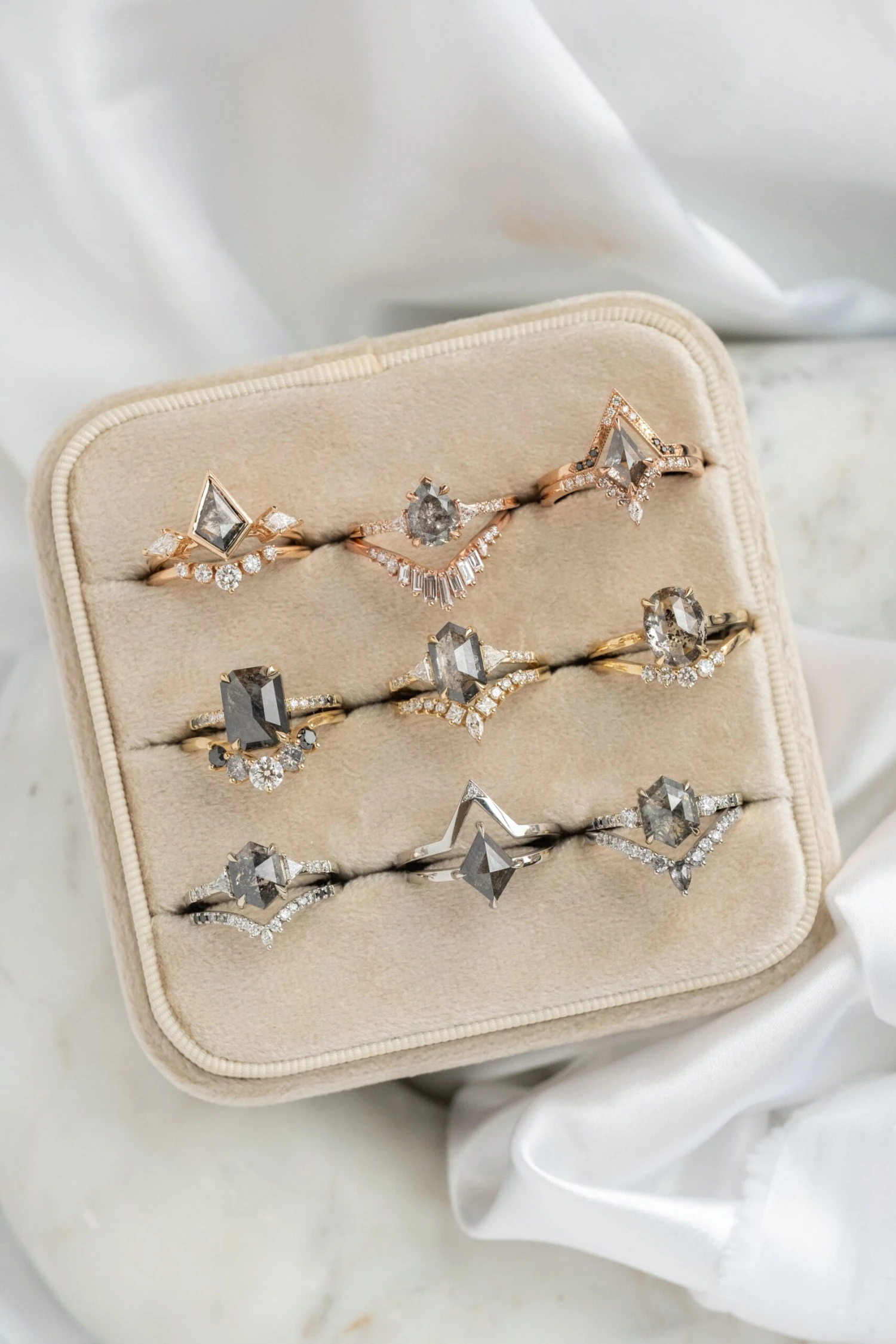 Wedding Rings: This engagement ring can be stacked with ANY of our hundreds of wedding ring options, we use the same engagement ring CAD measurements to build the wedding ring around it to ensure a great stacking set.
