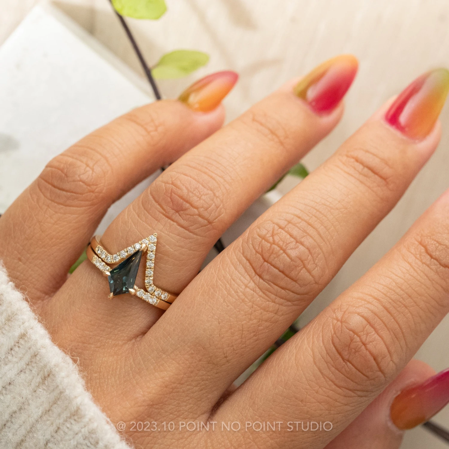 Shown pictured with our Diamond Victoria wedding band and Cassiopeia wedding ring, sold separately here.