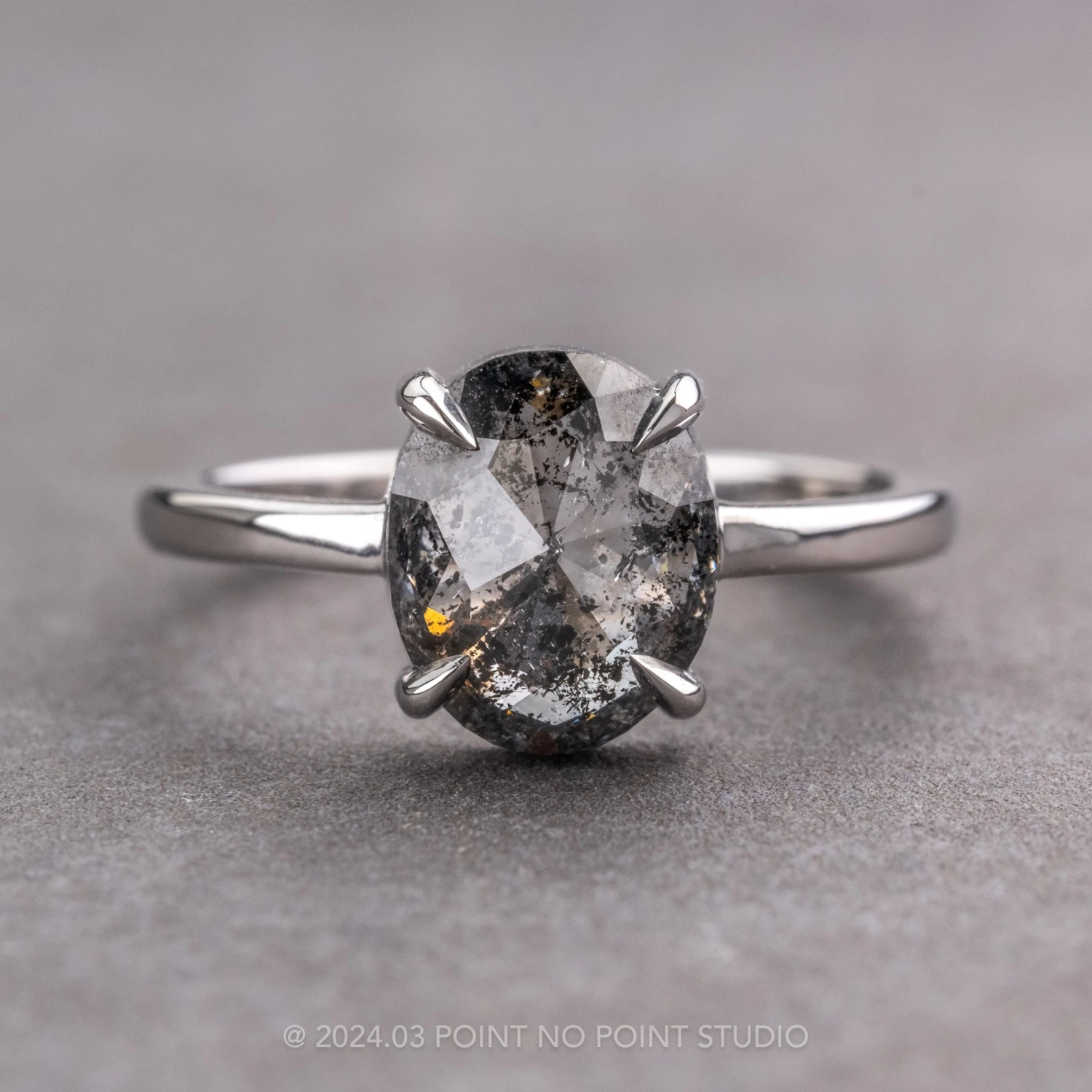 Black Speckled Oval Diamond Engagement Ring