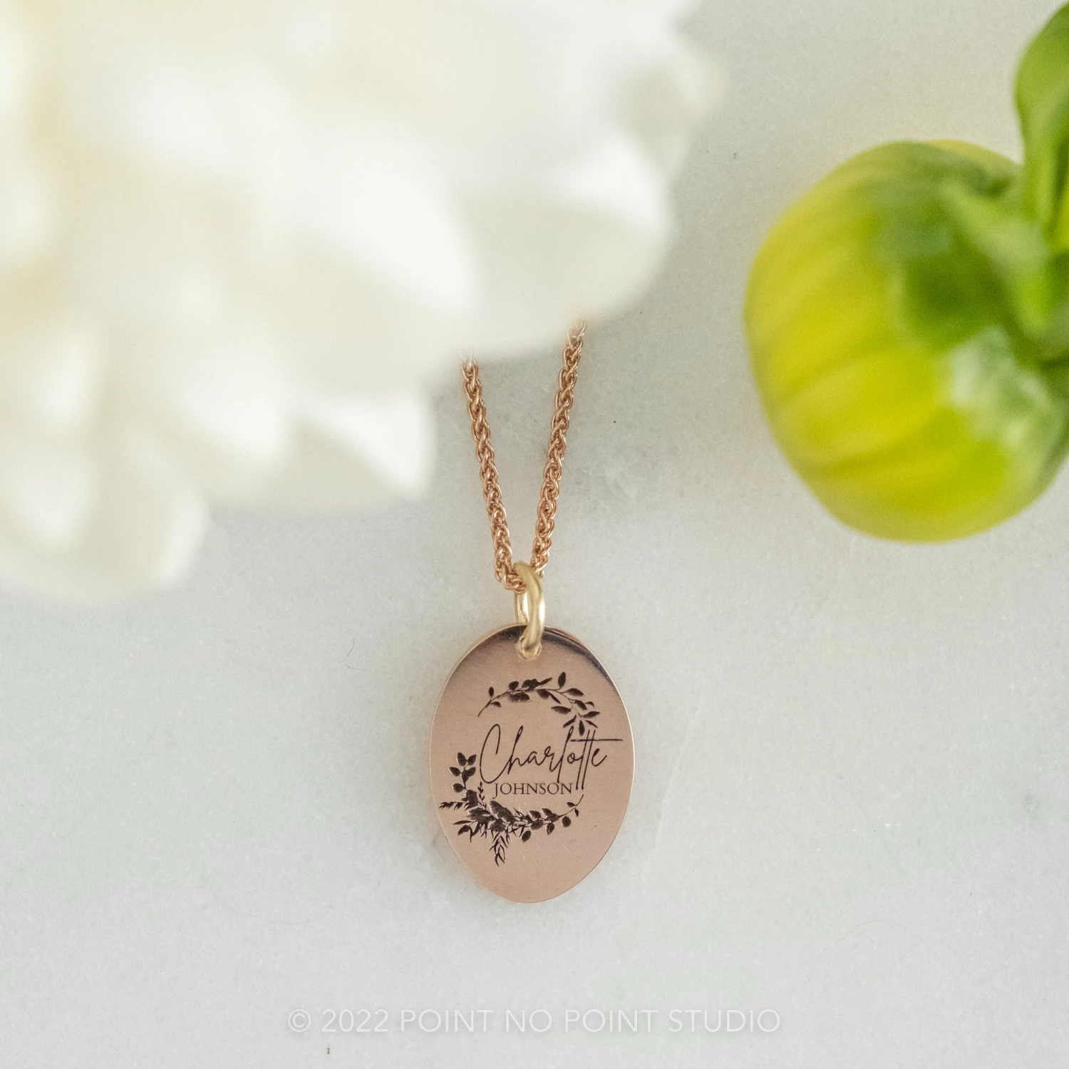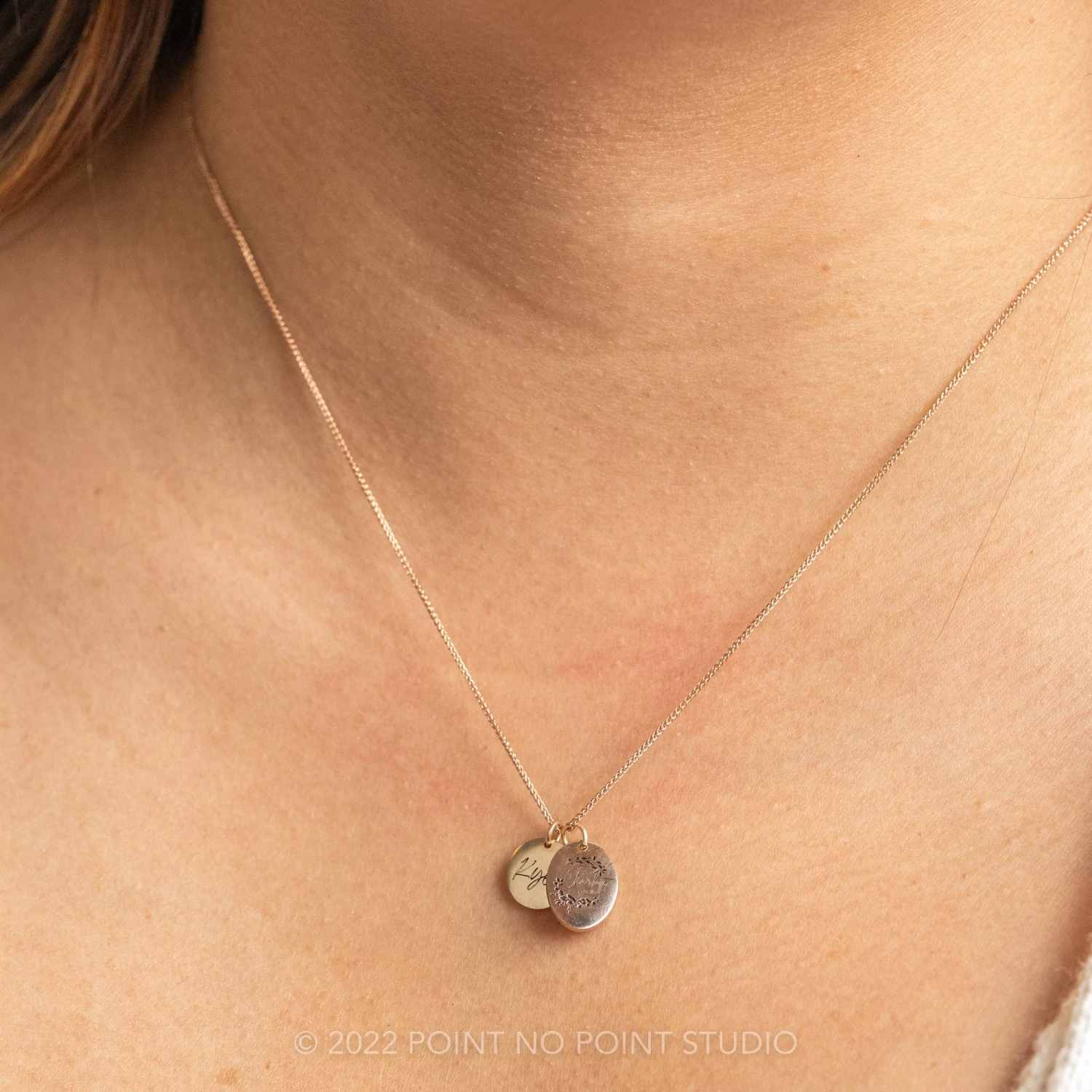 This listing is for one single small oval disc charm that measures approximately 12.5mm by 9.3mm, with the option of adding a 14k gold chain to complete the look. Each charm is made of solid recycled 14k gold, your choice of yellow, white or rose gold.