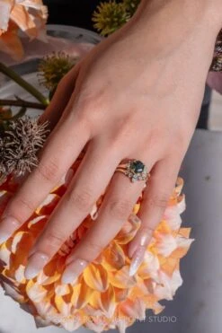 Shown pictured with our Ombre Robin, Paloma and Single Diamond Vintage Vivian wedding bands, sold separately here.