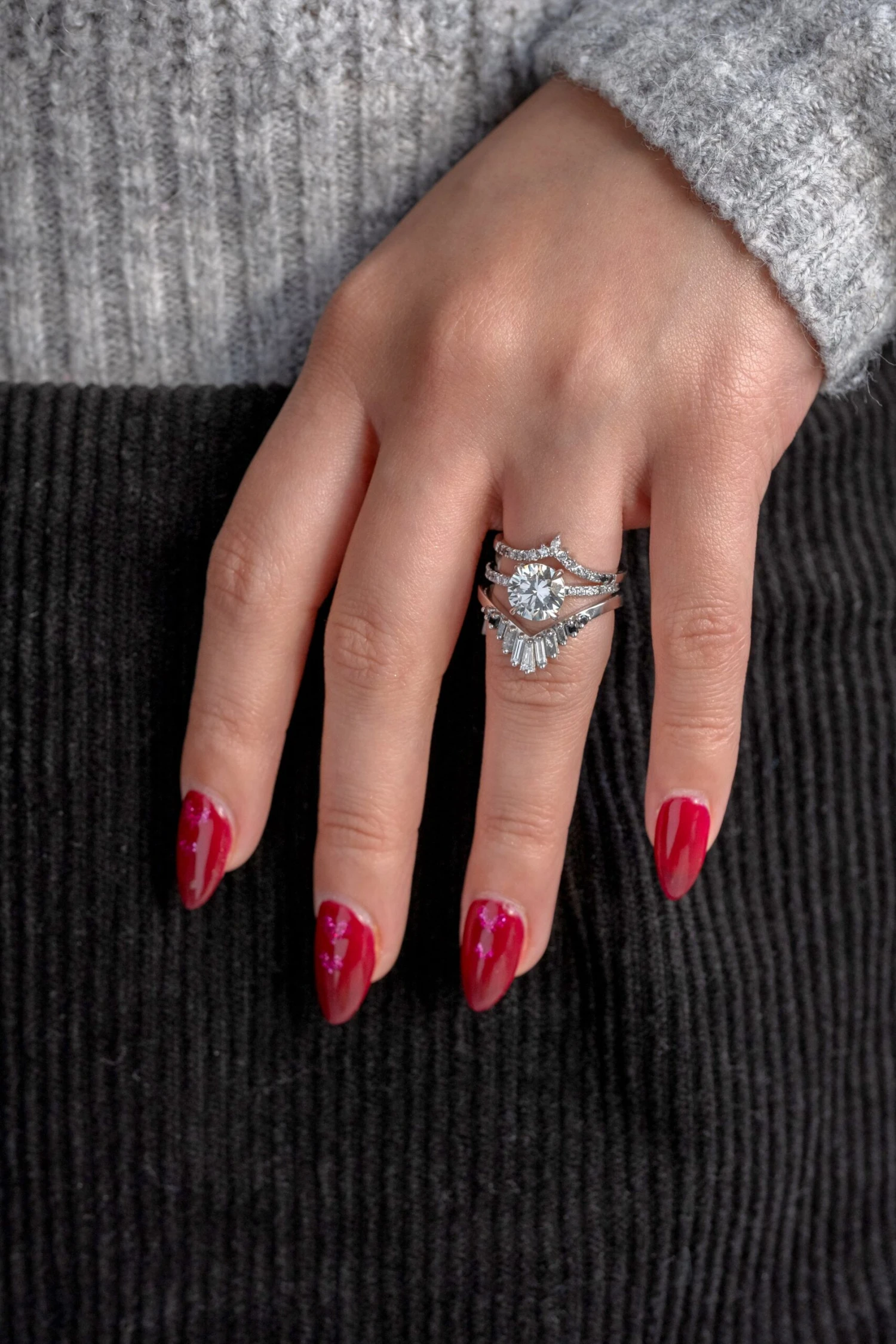 Wedding Rings: This engagement ring can be stacked with ANY of our hundreds of wedding ring options, we use the same engagement ring CAD measurements to build the wedding ring around it to ensure a great stacking set.