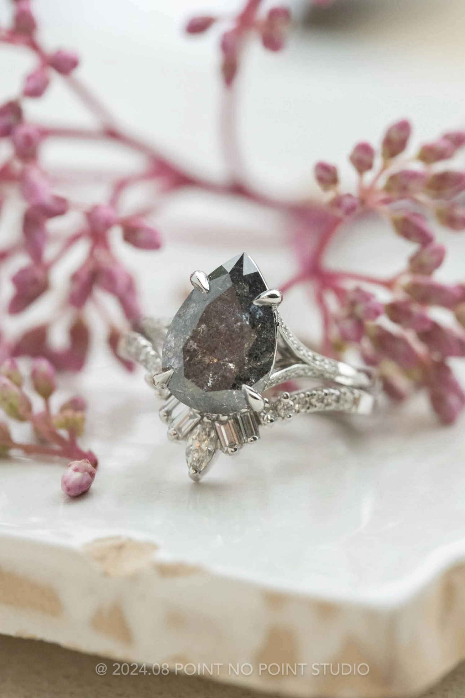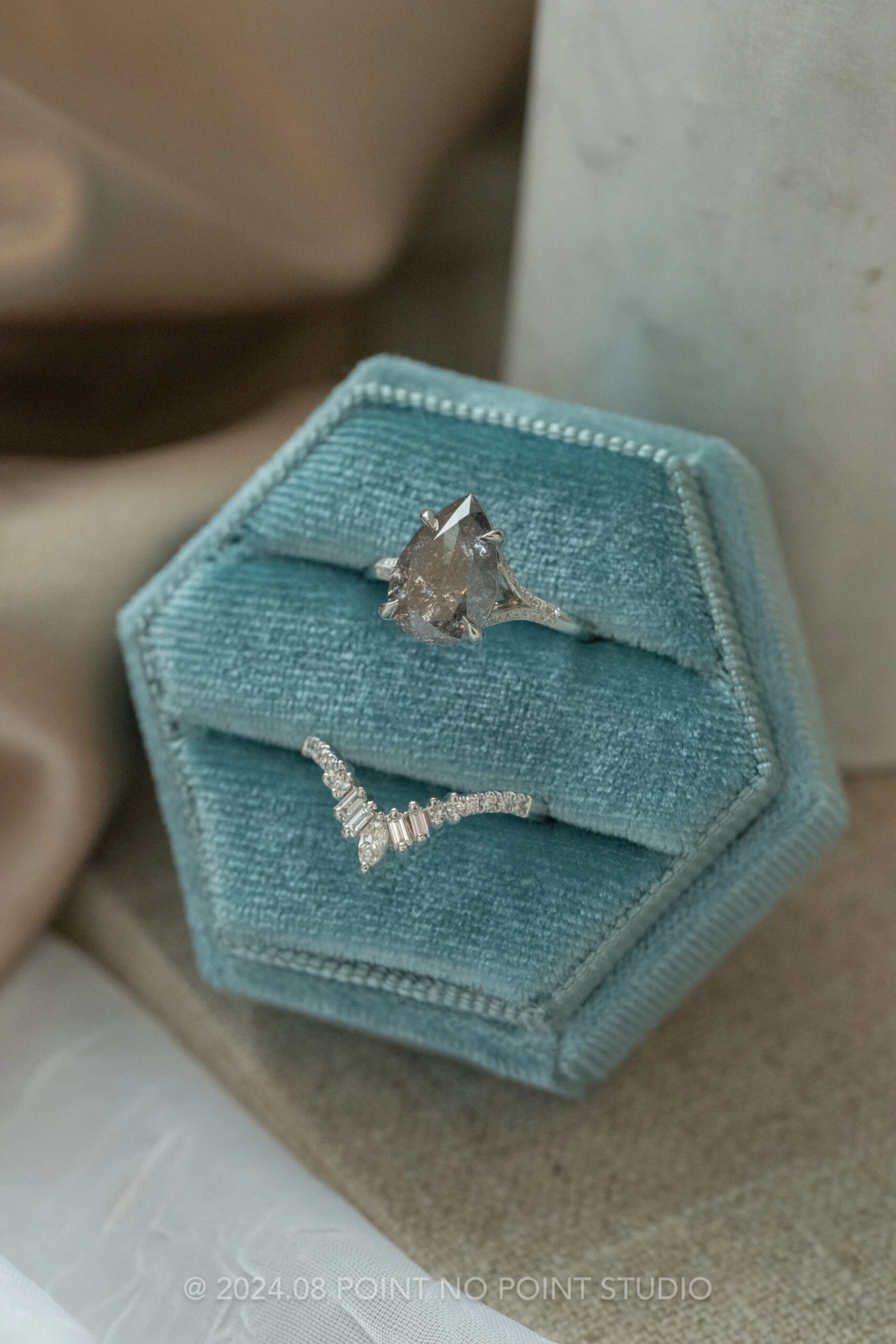 Shown pictured with our Salt and Pepper Cassiopeia wedding band, sold separately here.