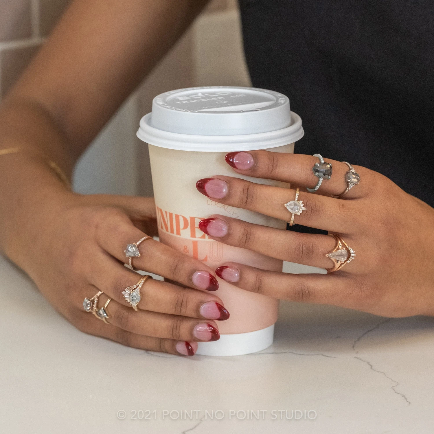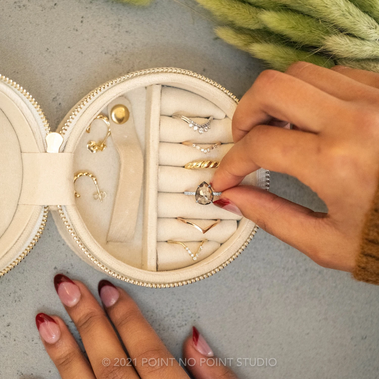 Included with your order – A Point No Point Studio digital ring certificate on a branded PNP USB drive, black velvet clam shell box, and a polishing cloth.