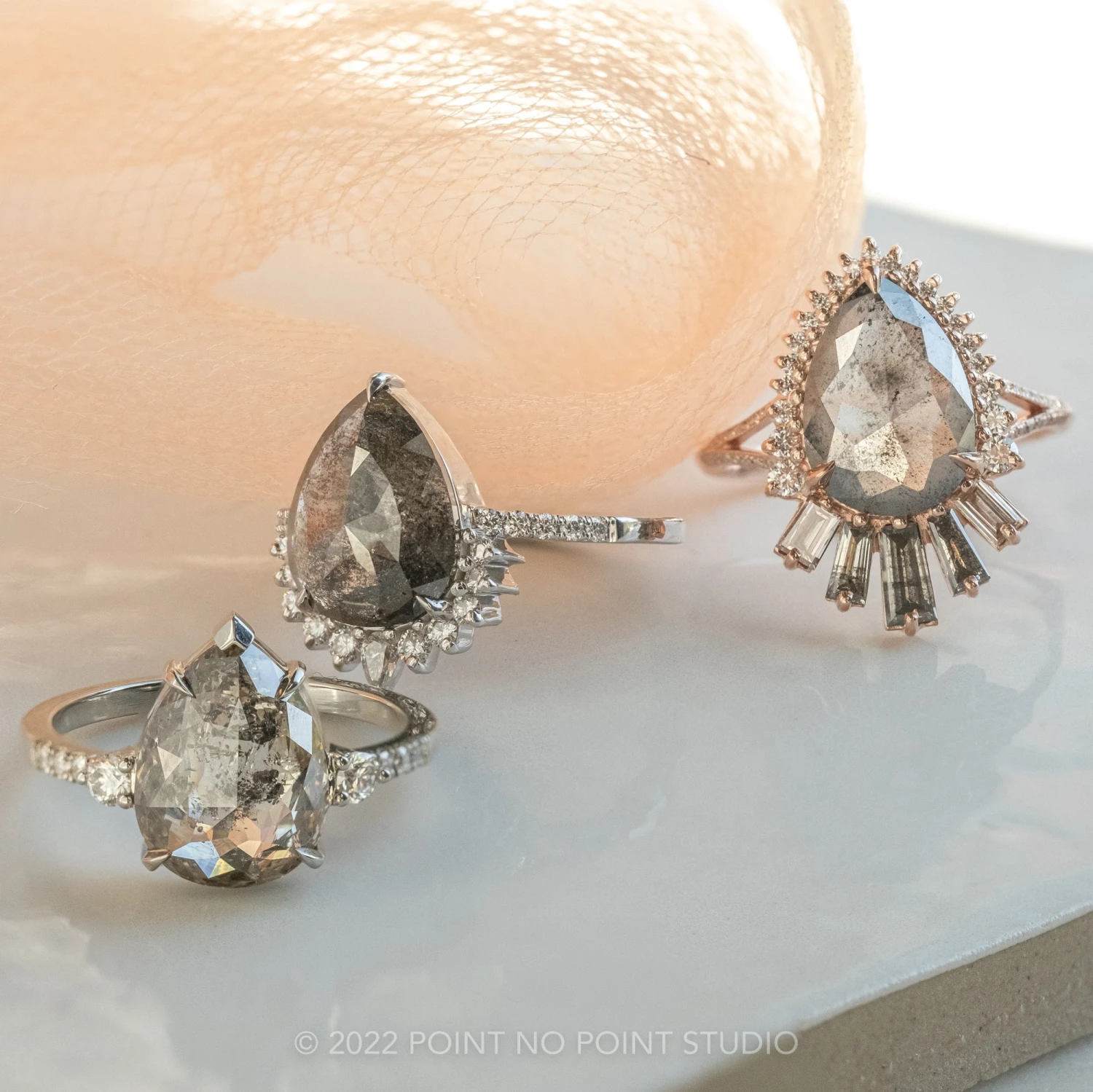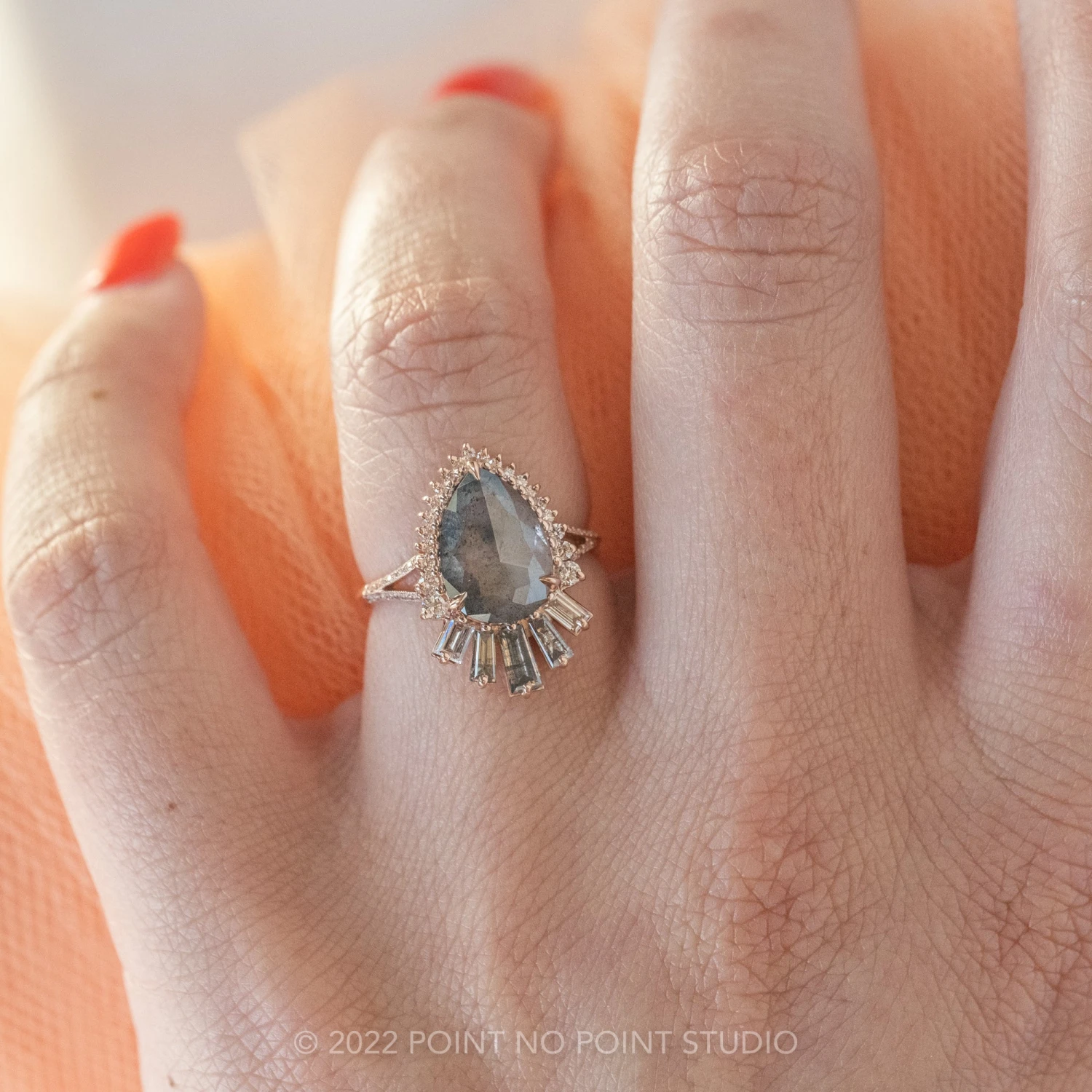 Salt and Pepper Pear Diamond Engagement Ring