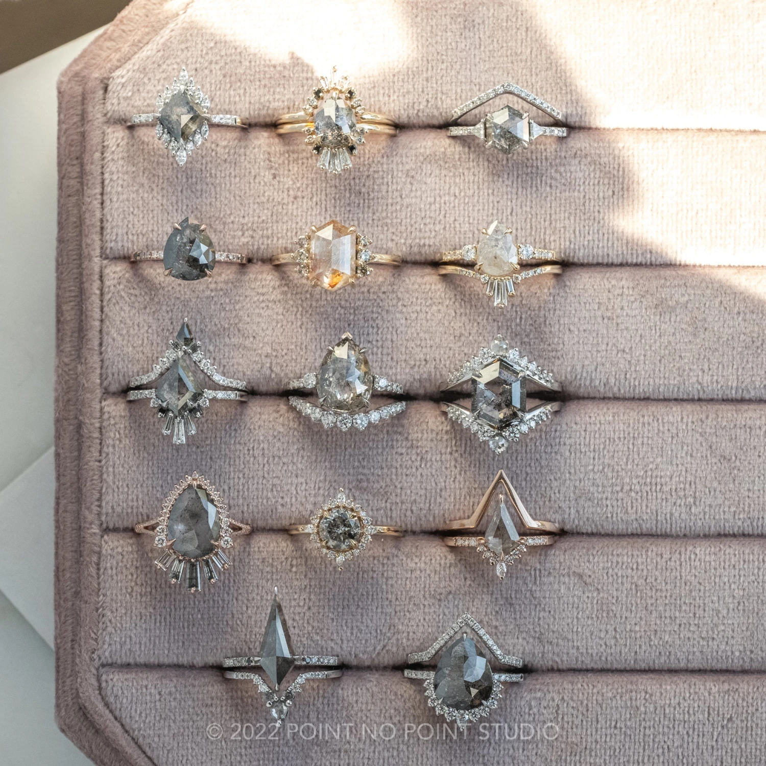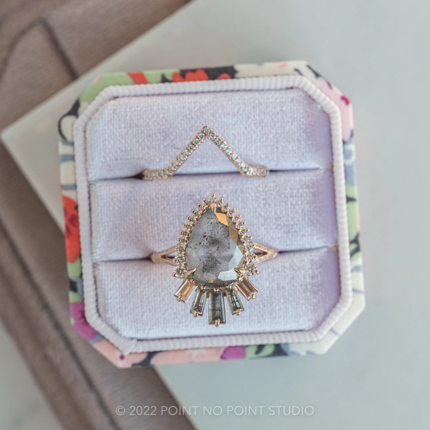 Included with your order – A Point No Point Studio digital ring certificate on a branded PNP USB drive, black velvet clam shell box, and a polishing cloth.