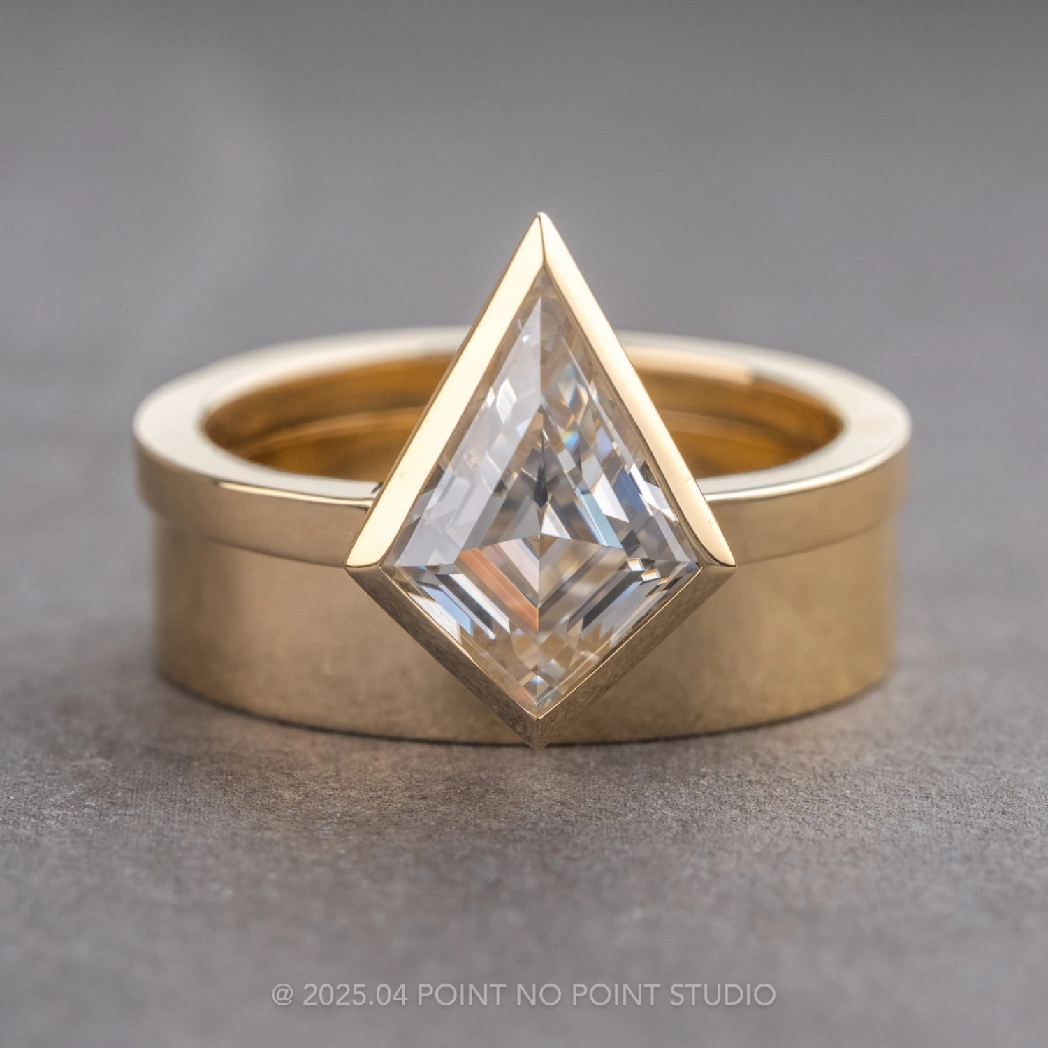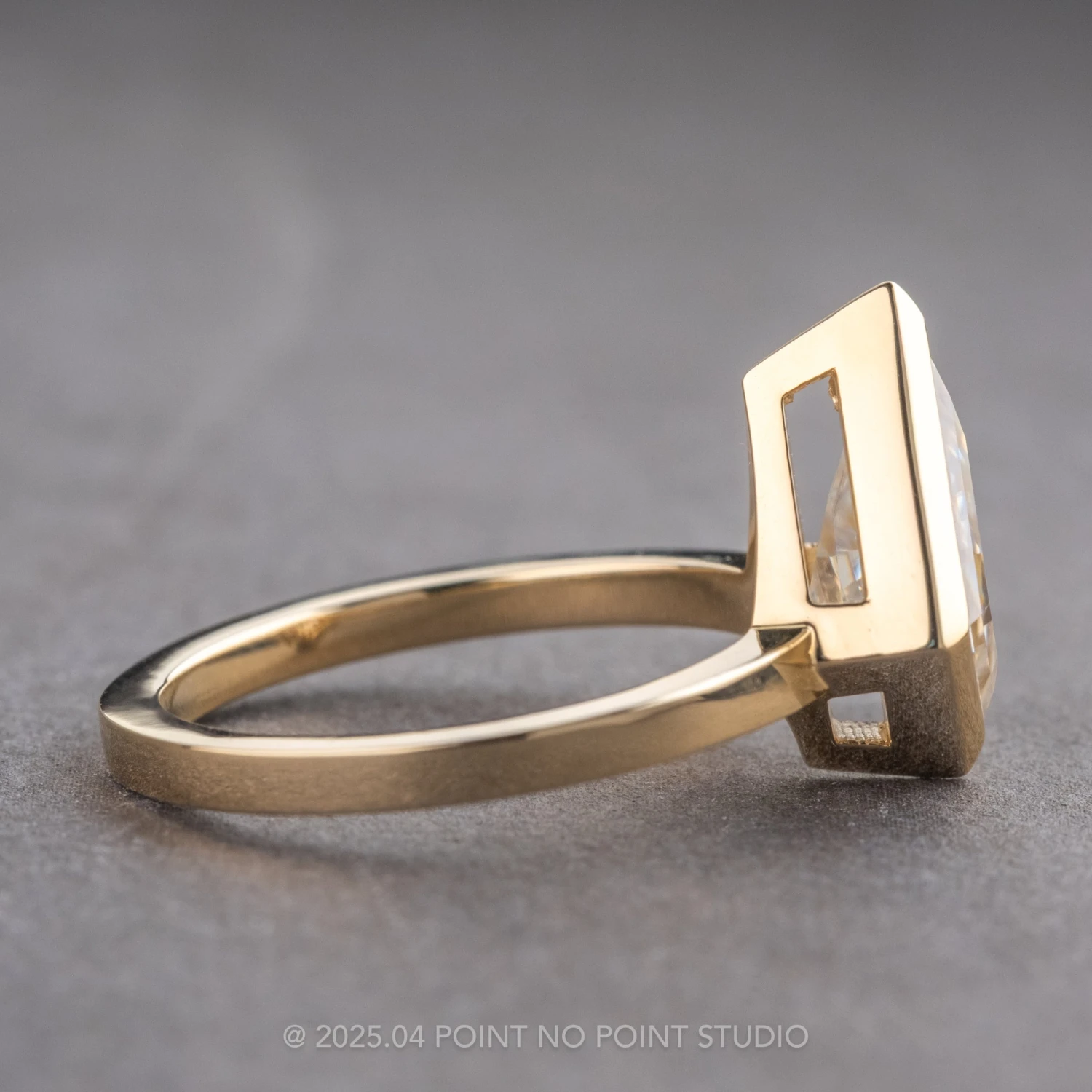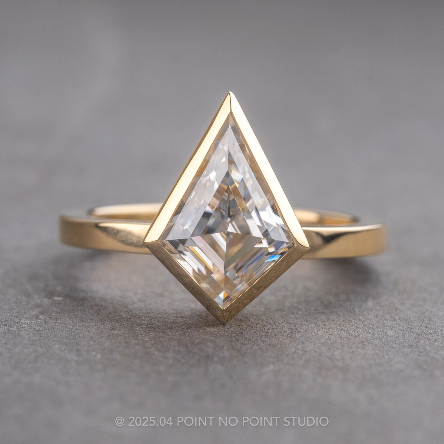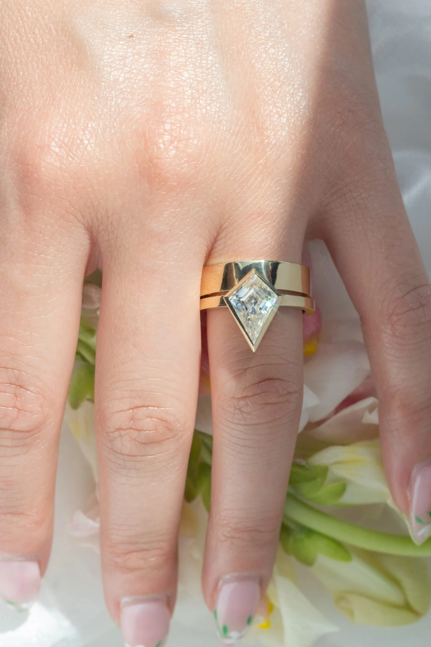 The entire ring is made of eco-friendly recycled 14k yellow gold with a rectangle ring band measuring 2mm wide. The kite is securely set in a raised bezel setting that fully encompasses the stone and sits slightly raised off the finger. The sides of the setting are cut away to let light shine through the stone, adding that extra sparkle!