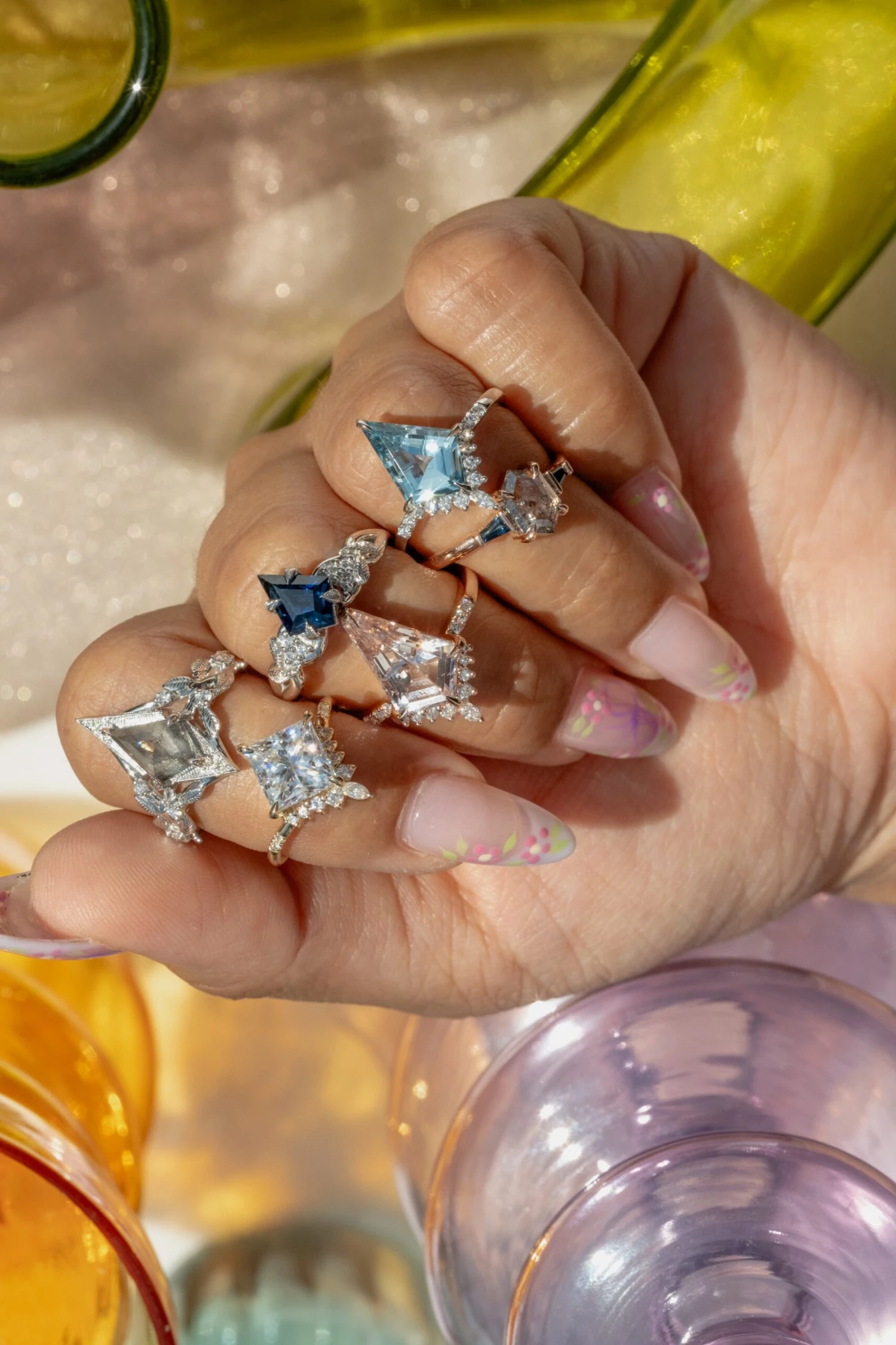 Shown pictured with our Maeve and Kite Athena wedding bands, sold separately here.