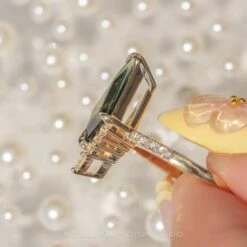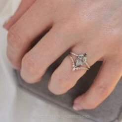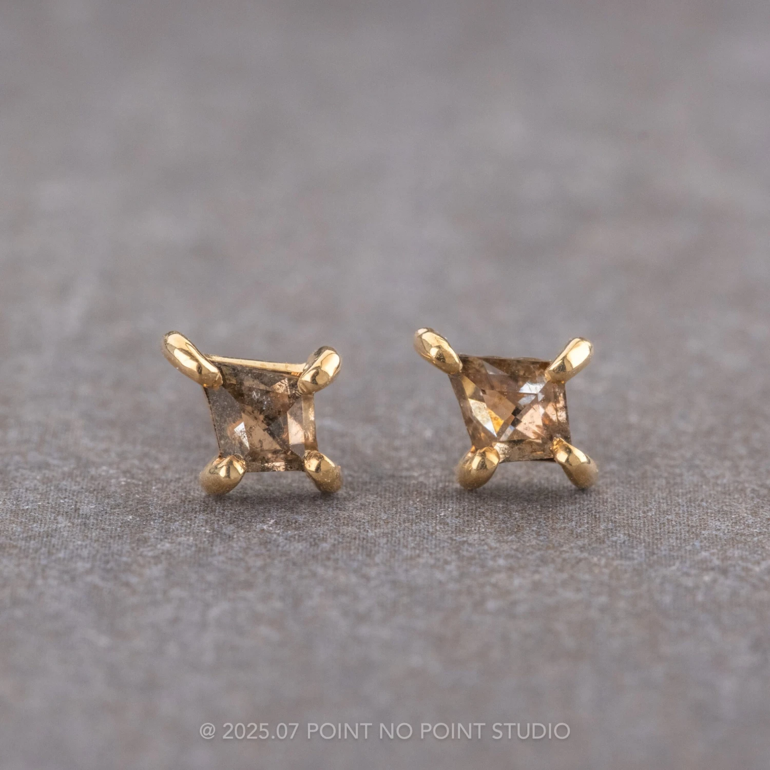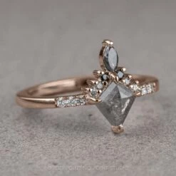Each of these unique earrings feature a stunning salt and pepper kite diamond – the diamonds are hand cut and each have their own unique inner tones and speckling.