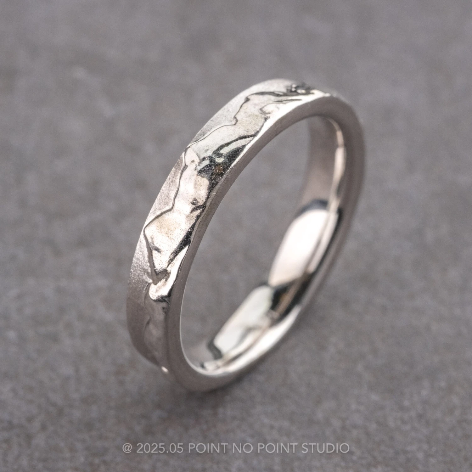 4mm Mountain Mens Wedding Ring, 14k White Gold