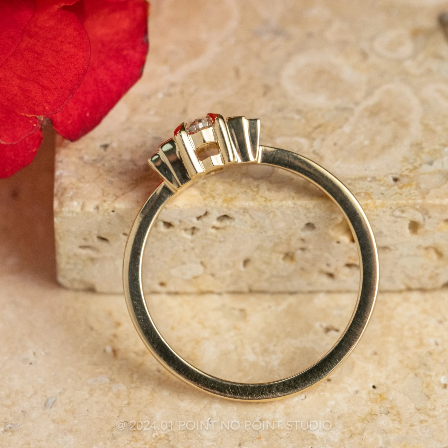 The entire ring is made of recycled 14k yellow gold with a ring band measuring 1.7mm wide. The 4-prong basket setting sits slightly raised off the finger and is extremely comfortable for everyday wear!