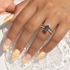 2.09 Carat Black Speckled Oval Diamond Engagement Ring, Beatrice Setting, 14k Yellow Gold