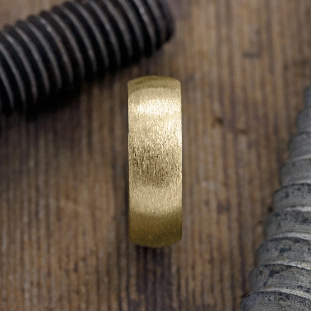 This ring is made of solid recycled eco friendly 14k recycled yellow gold. The half round, matte band is so simple and traditional. The outside of the ring has been given a brushed matte finish and the inside and edges of the ring a high polished finish.