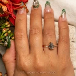 1.25 Carat Black Speckled Pear Diamond Engagement Ring, Bezel Jules Setting, 14K Rose Gold