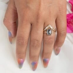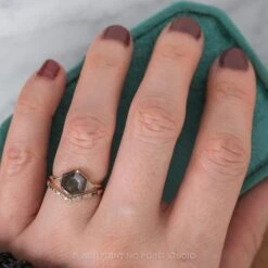 1.58 Carat Black Speckled Hexagon Diamond Engagement Ring, Bezel Zoe Setting, 14K Rose Gold