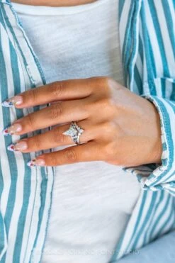 1.91 Carat Princess Cut Moissanite And Diamond Engagement Ring, Flora Setting, 14k Yellow Gold