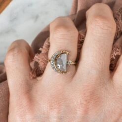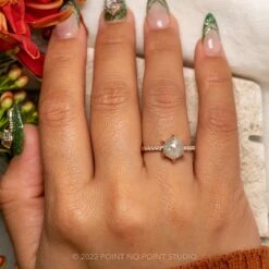 2.04 Carat Salt And Pepper Round Diamond Engagement Ring, Bezel Halo Setting, 14k White Gold