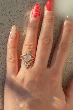 2.03 Carat Orange Speckled Icy White Triangle Diamond Engagement Ring, Jane Setting, 14K Rose Gold