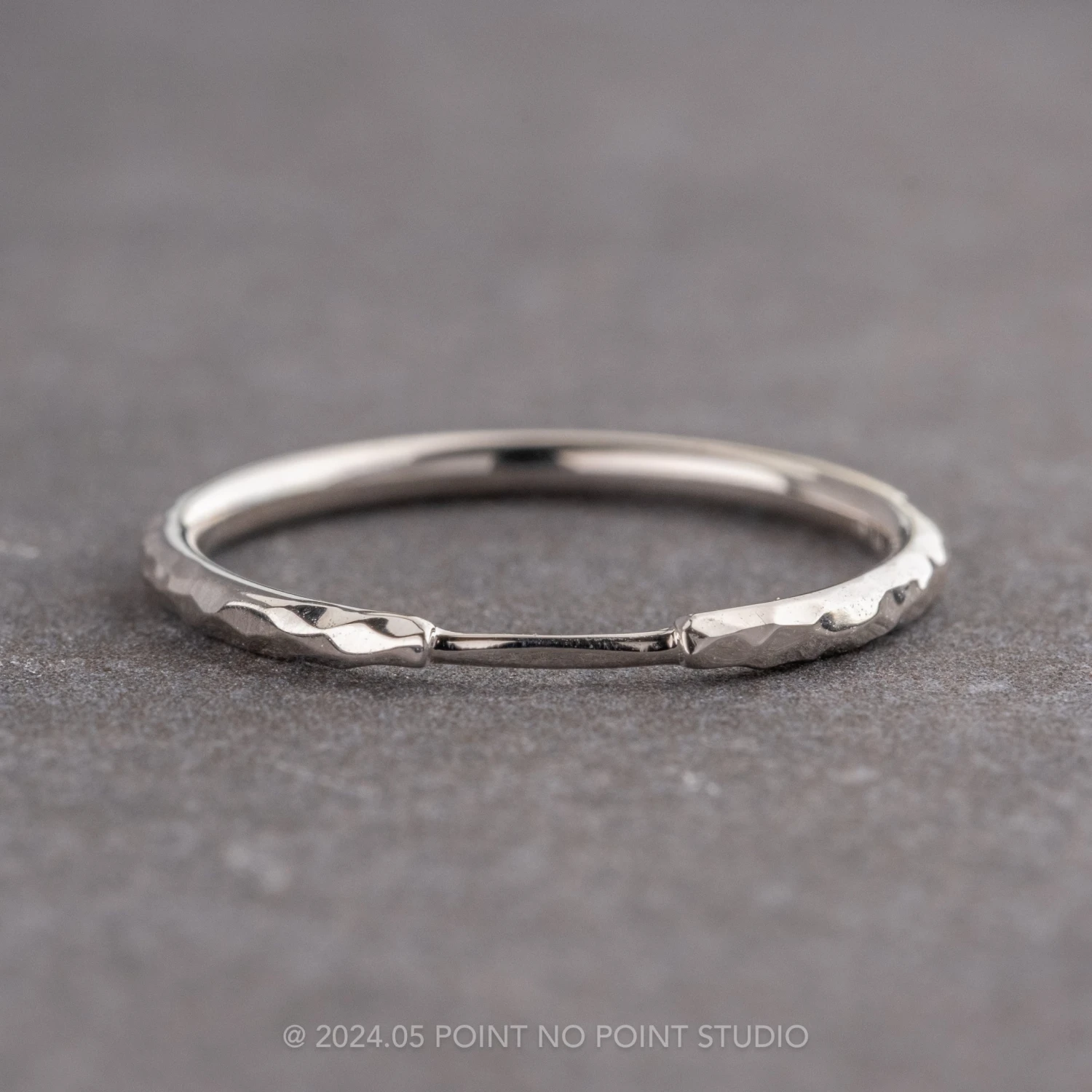 Hammered Harper Cuff Wedding Band, 14k White Gold