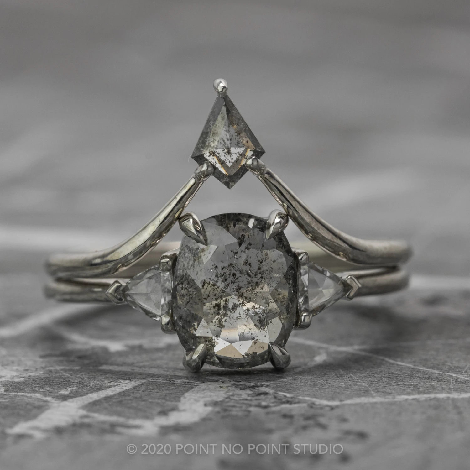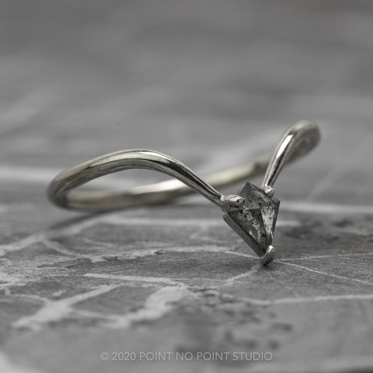 Enhance your engagement ring with the beautiful 14k white gold Victoria wedding band. At the tip of the V there is a salt and pepper kite diamond. This wedding band can be worn alone, stacked in multiples, or to match any number of engagement rings!