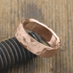 The entire ring is made of eco-friendly recycled 14k peach gold; the settings for the stones were made to be low profile and comfortable for everyday wear.