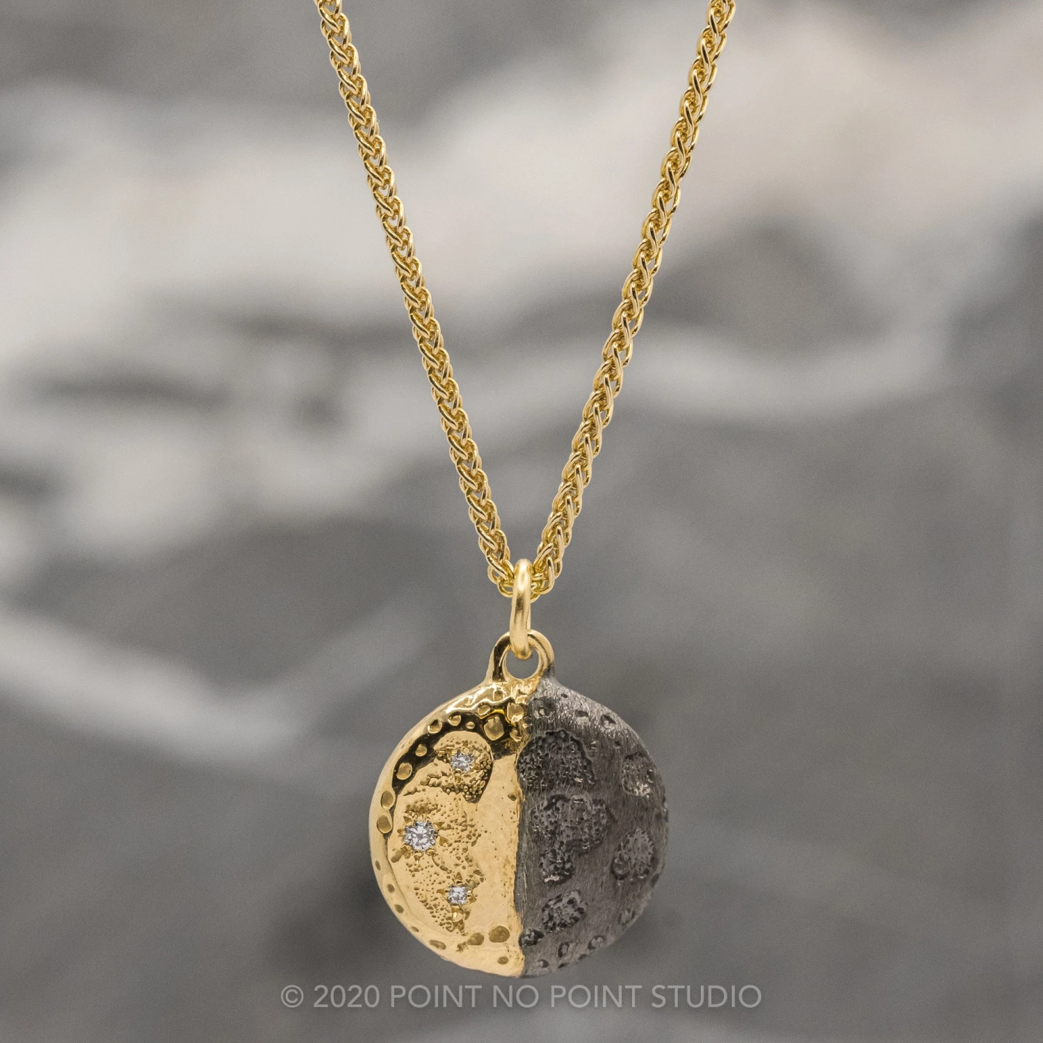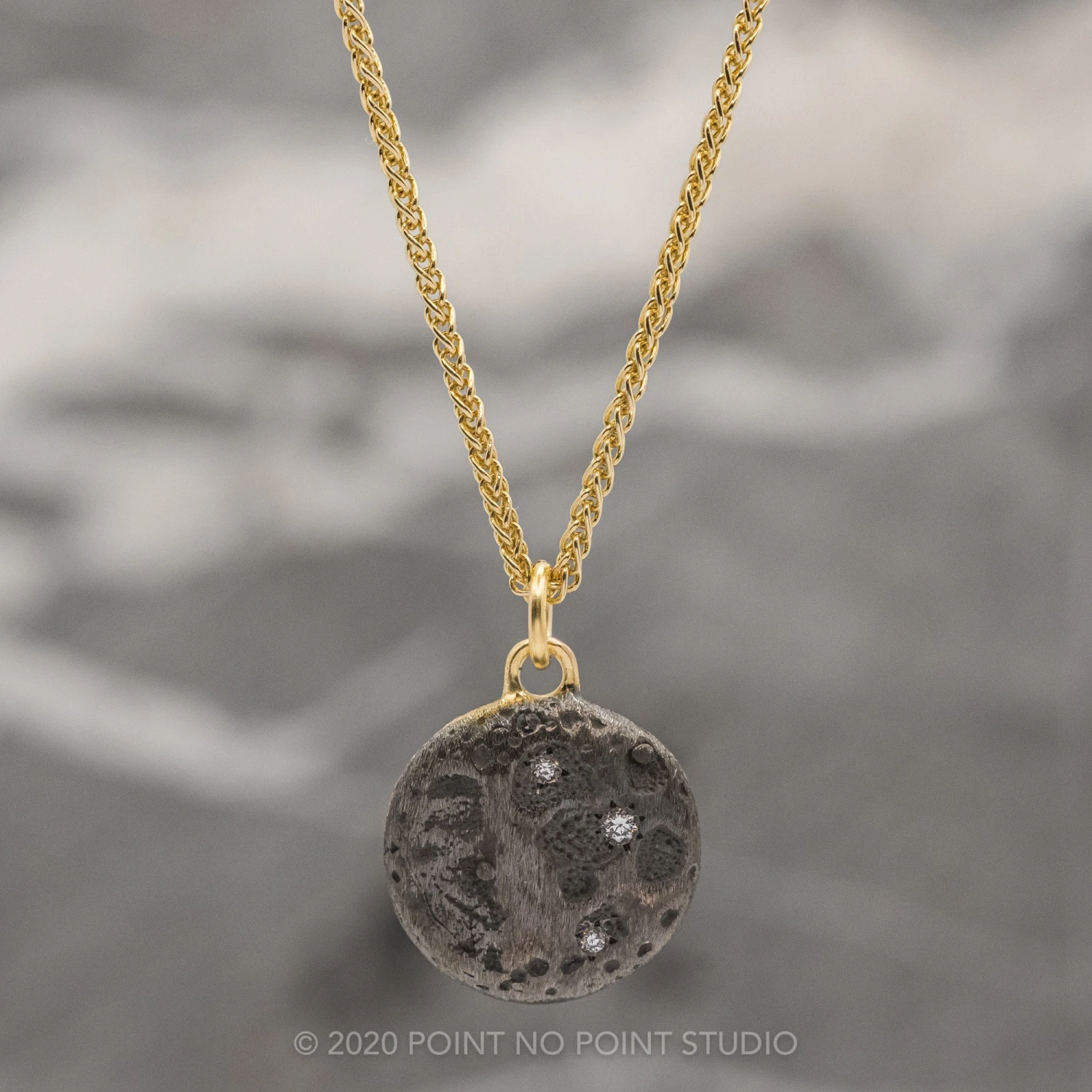 As an added touch, 3 diamonds will be sprinkled across the moon’s surface. The diamond color can be black, white, or salt & pepper.