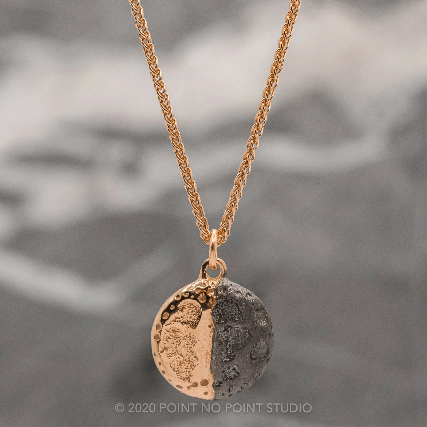 Commemorate a special date with our Point No Point Studio moon pendant! This stunning necklace/pendant is the perfect keepsake to honor a cherished date; birthdays, anniversaries, new babies, and any other occasion that you would like to keep close to your heart. To find your moonphase, you can calculate the date here.