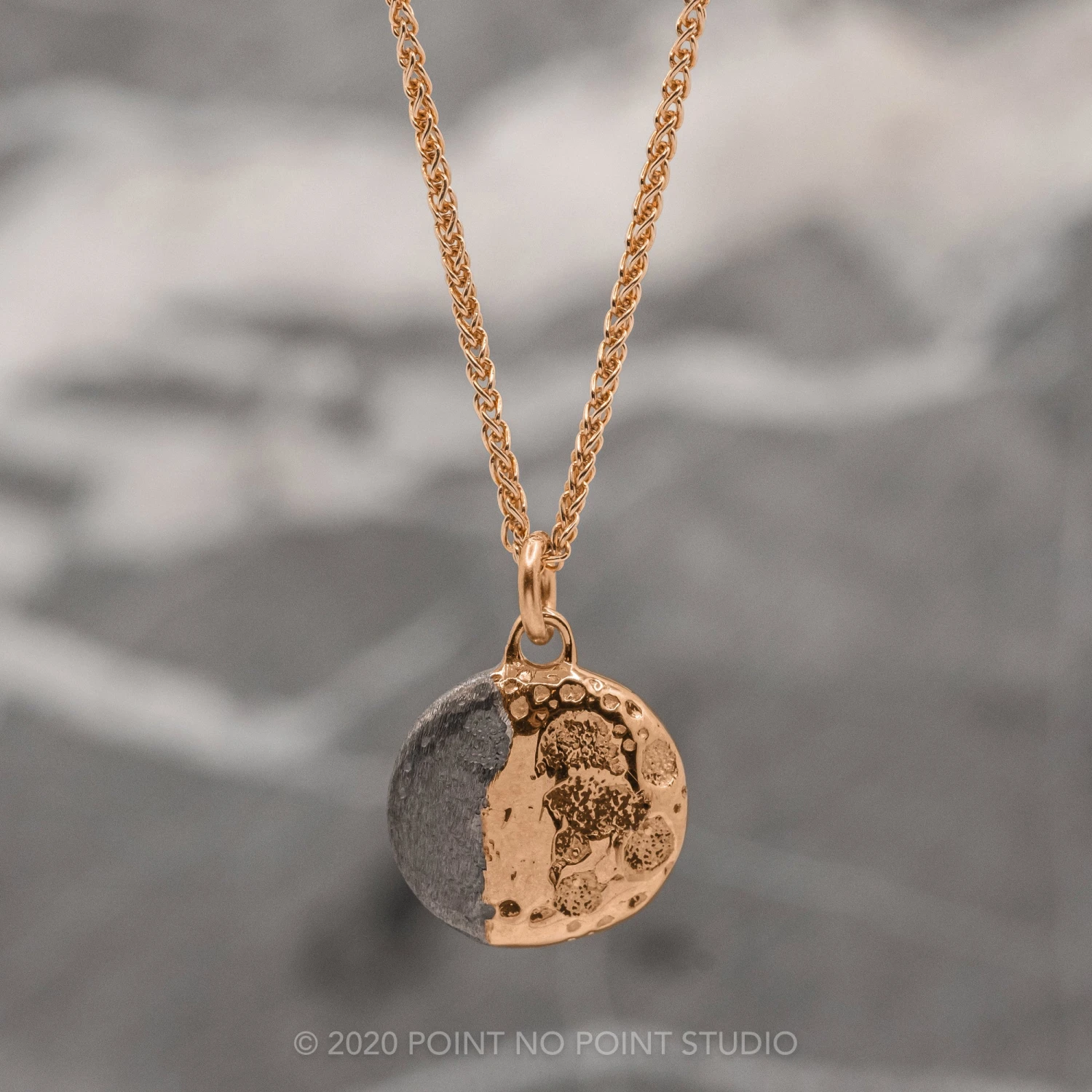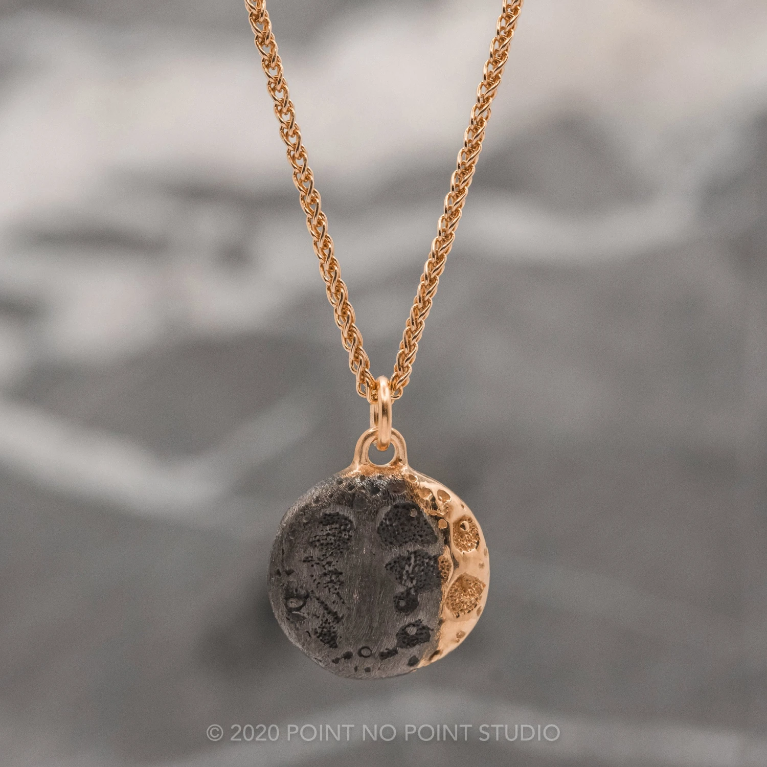 You can customize this pendant by blackening the area of the moon that would not be visible during that phase or you can keep it all gold.