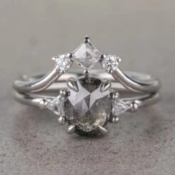 Hexagon Diamond Mens Wedding Band, Comfort Fit, 14K White Gold, Half Round Matte Finish
