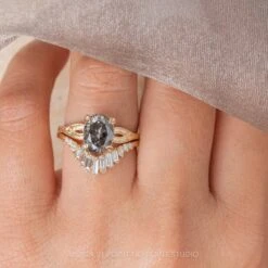 2.61 Carat Salt And Pepper Pear Diamond Engagement Ring, Ava Setting, 14K White Gold