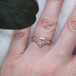 Icy White Round Rose Cut And Kite Diamond Wedding Ring, Cassiopeia Setting, 14K Rose Gold