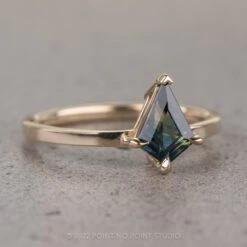 .94 Carat Teal Kite Sapphire Engagement Ring, Jane Setting, 14K Yellow Gold