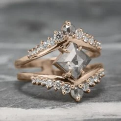 .89 Carat Grey Speckled Lozenge Diamond Engagement Ring, Empress Setting, 14K Rose Gold