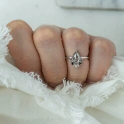 1.38 Carat Icy Salt And Pepper Pear Diamond Engagement Ring, Ombre Wren Setting, 14K White Gold