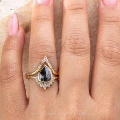 2.99 Carat Black Speckled Pear Diamond Engagement Ring, Bezel Ava Setting, 14K Yellow Gold
