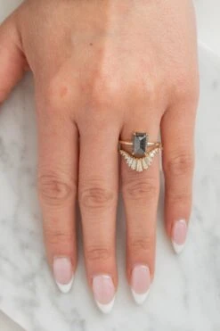 2.71 Carat Salt And Pepper Hexagon Diamond Engagement Ring, Ombre Jules Setting, 14K White Gold