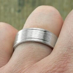 8mm 14K White Gold Mens Double Channel Wedding Ring, Matte Finish
