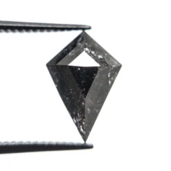 1.83 Carat Black Speckled Hexagon Diamond Engagement Ring, Empress Setting, 14K Yellow Gold