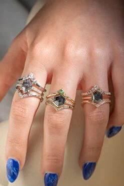 1.88 Carat Salt And Pepper Hexagon Diamond Engagement Ring, Ombre Sirena Setting, 14K Rose Gold