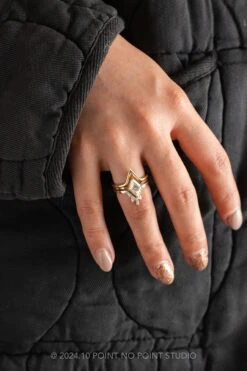 4.18 Carat Black Speckled Kite Diamond Engagement Ring, Bezel Ombre Ava Setting, 14K Yellow Gold