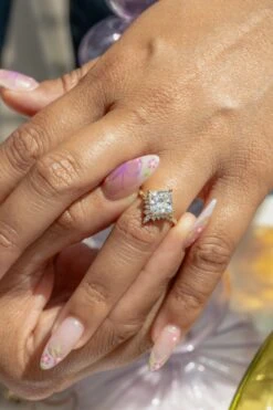 1.91 Carat Princess Cut Moissanite And Diamond Engagement Ring, Flora Setting, 14k Yellow Gold