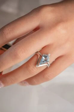 2.11 Carat Light Blue Kite Aquamarine And Diamond Engagement Ring, Avaline Setting, Platinum